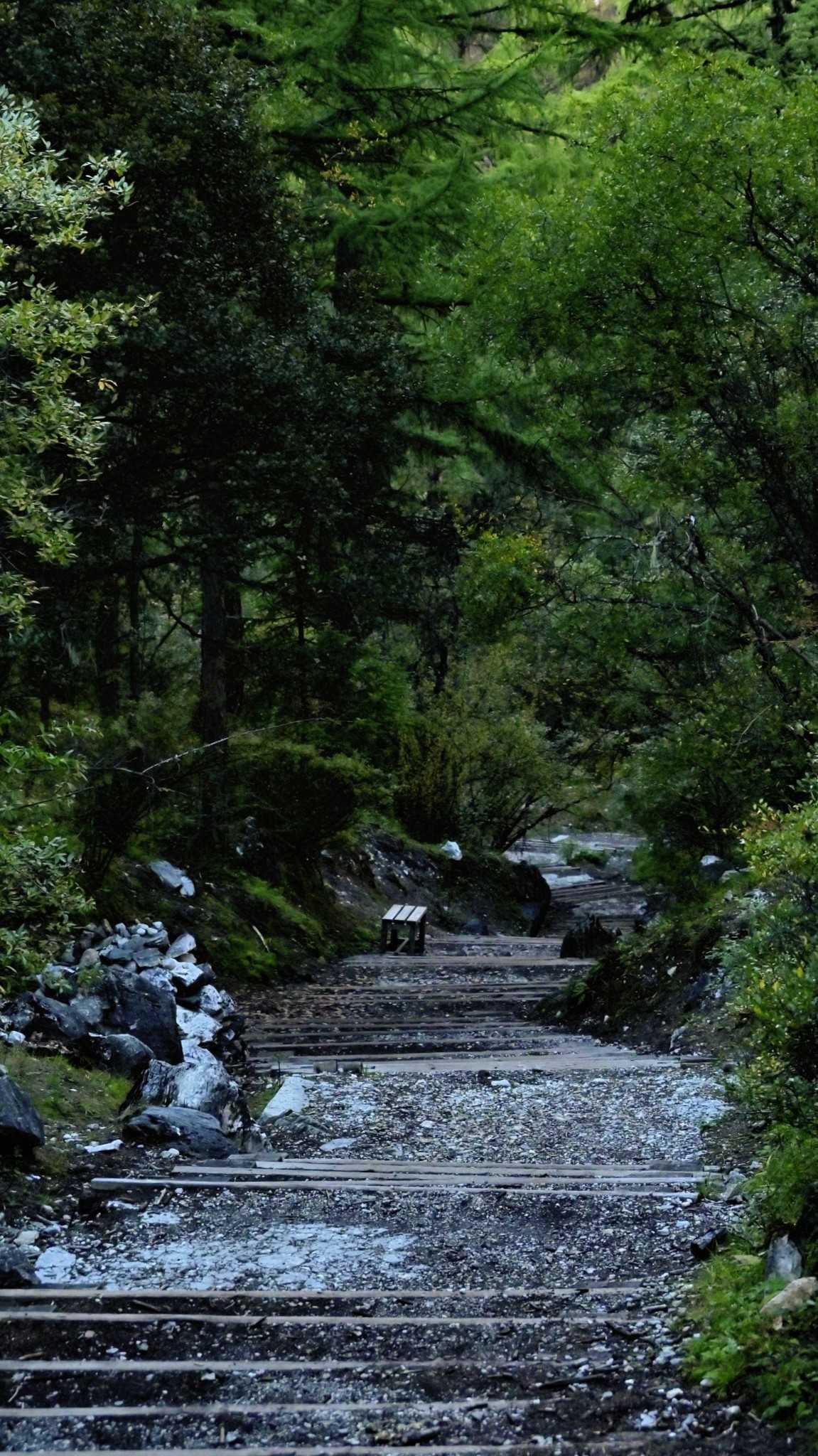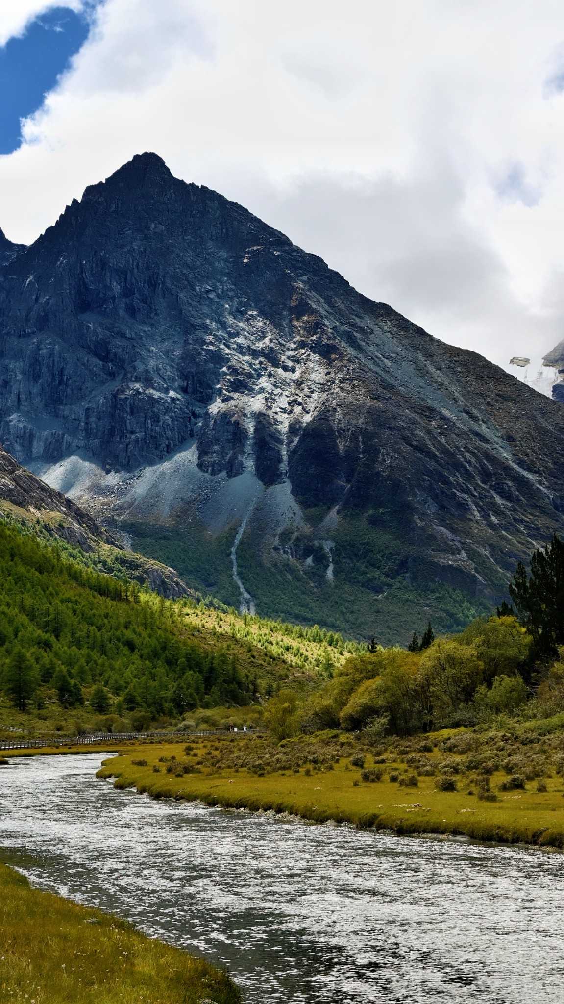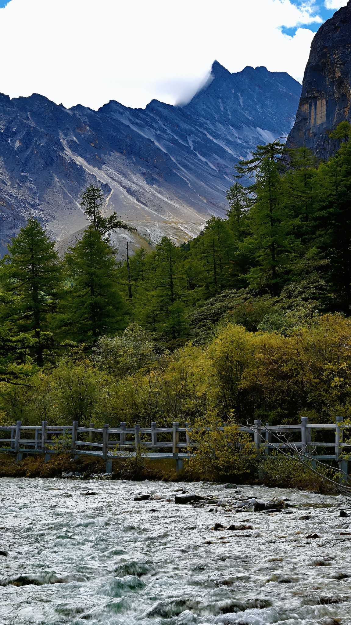 Daocheng Yading Scenic AreaThis segment is truly beautiful; inside it your vision reshapes. At human height looking up, the world is layered—each layer filled by towering fir, spruce, wilderness, massifs, and sky.