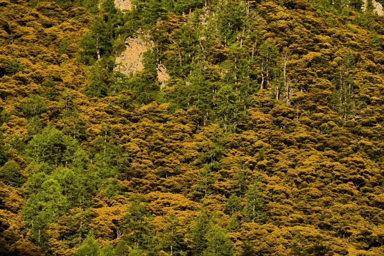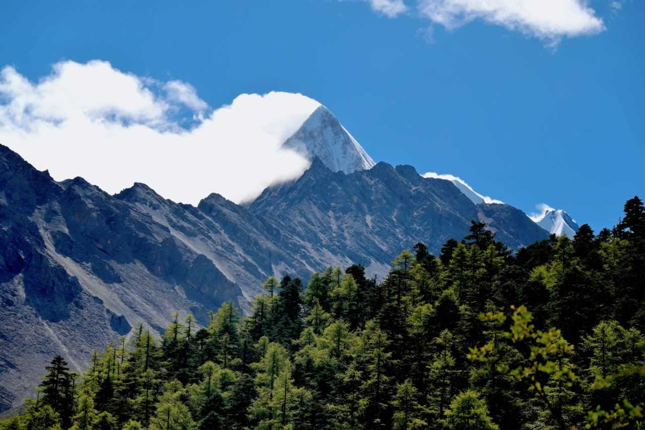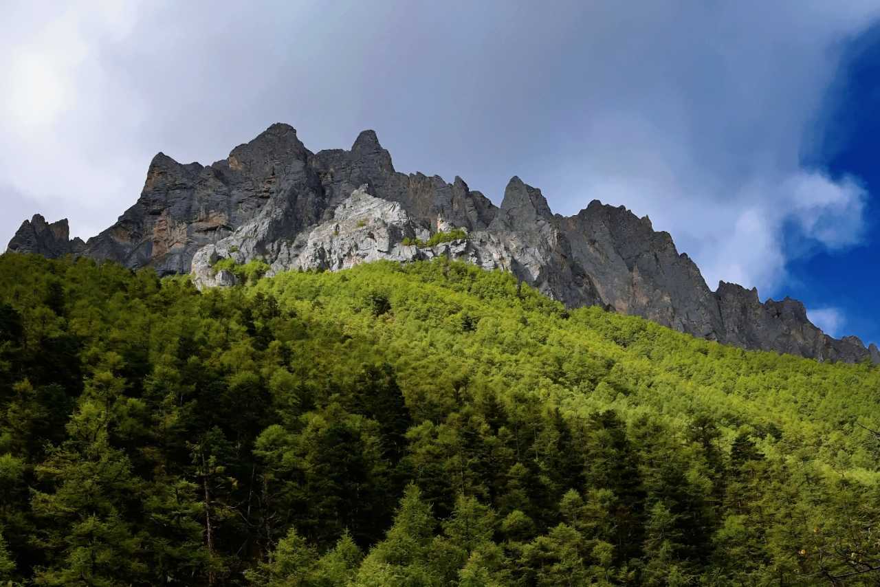 Daocheng Yading Scenic AreaBroadleaf forest with large leaves gradually gives way to fir and spruce—like silent monks in dark green robes, standing orderly on poorer soils.