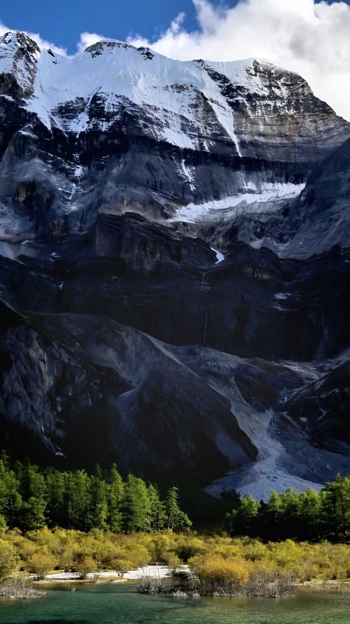 Five-Color LakeEn route you also enter Xiannairi’s domain—the chief among the three. Massive body spans the front; snow and glacier textures are clear—almost within reach. At Pearl Lake you only see the reflection; here you sense its breath.