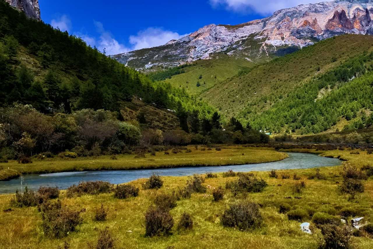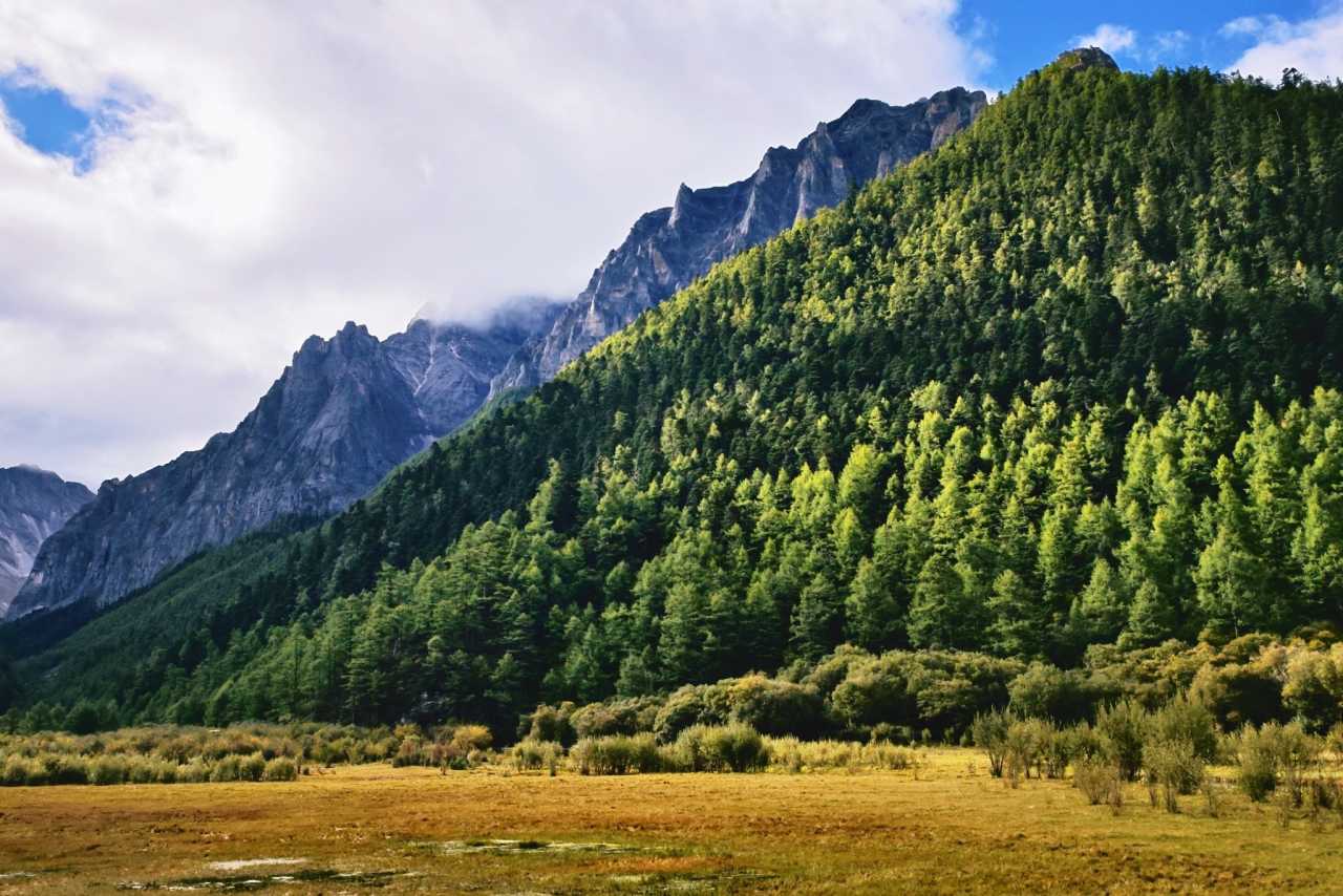 Daocheng Yading – Chonggu MeadowGeologically, tens of millions of years ago the eastern Tibetan Plateau rose strongly; climate shifted from arid desert to humid forest, allowing water systems to form.