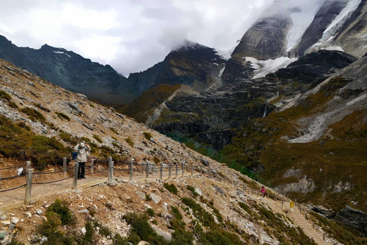 YangmaiyongLike Sacred Water Lake, Gongga Cuo has a broad viewing deck. Almost everyone is nailed in place, waiting for calm reflections.