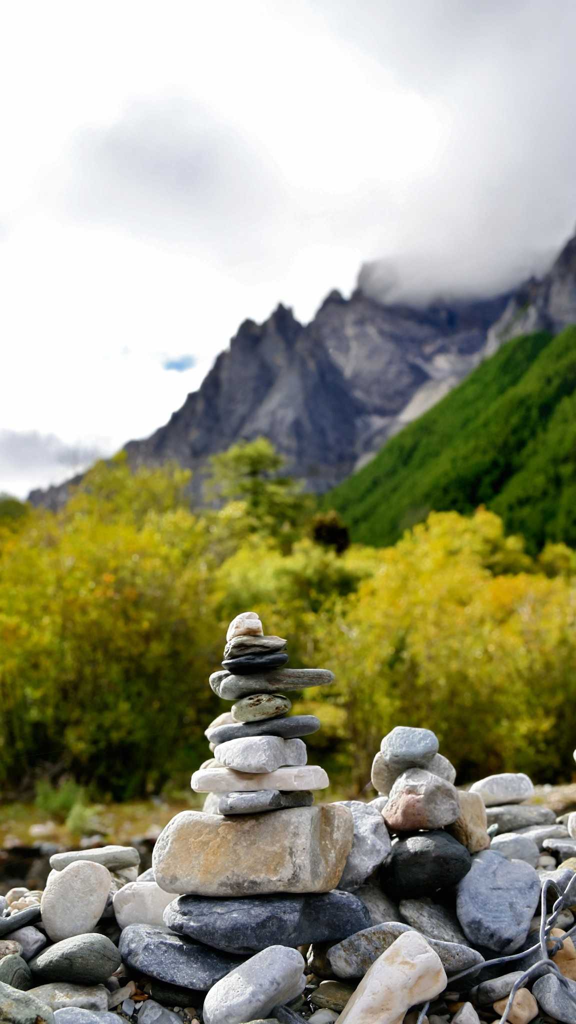Daocheng Yading Scenic AreaOn stony flats off the walkway, you’ll find mani piles of various shapes and heights, made of flat smooth pebbles carved by water. From afar, they look like a silent forest grown from wishes—each a tiny monument stacked with heart—countless strangers’ solidified footprints.