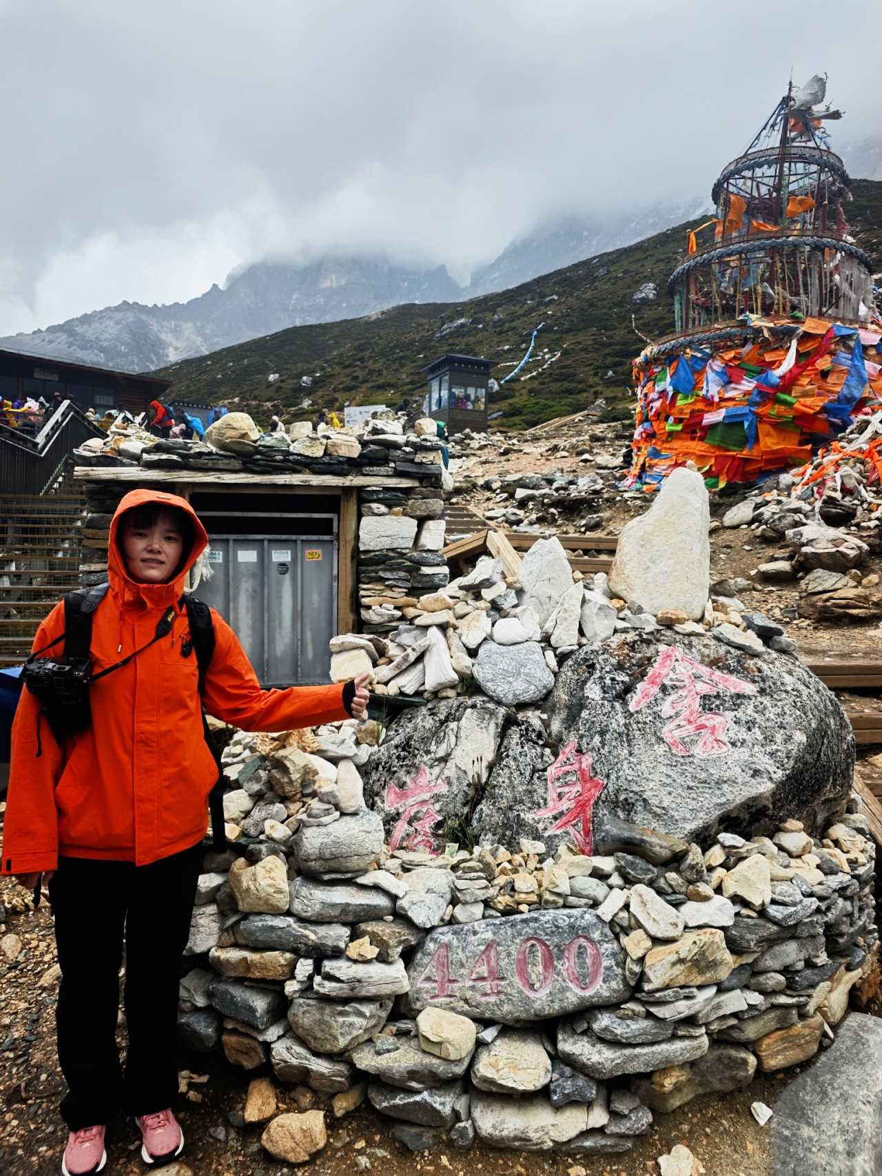 Five-Color LakeUnsurprisingly, under relentless staff urging, we were the last batch to leave. Worse than the “hell 300 m” is doing it again on return—downhill should be easy, yet felt even more draining. We forced a smile at Sheshenya for a check-in shot.
