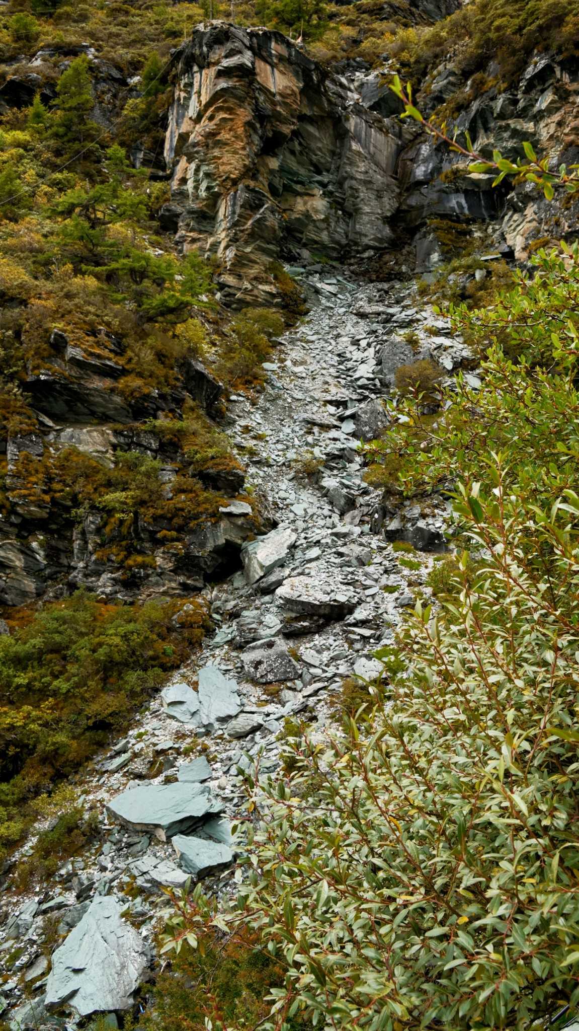 Scenery gave no comfort. Yangmaiyong looked cold and oppressive—so high, so near. Bare gray-black rock under thinning vegetation flashed hard, sharp lines—mirroring my smallness.