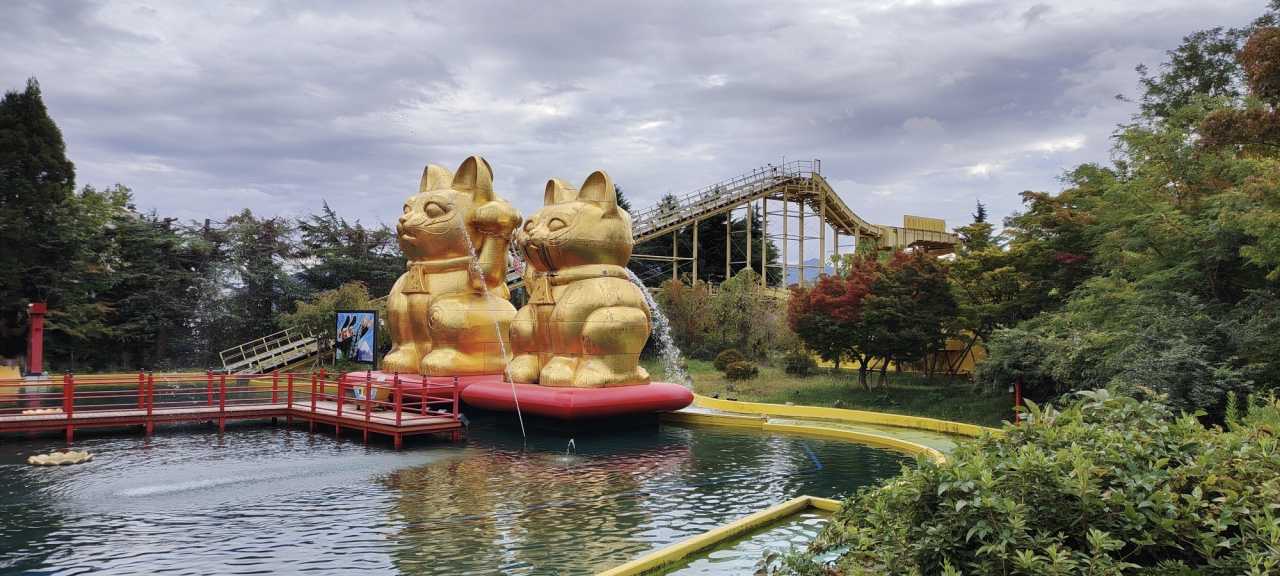 The Rocky Mountain water ride began operating in 2008; it is a type of shoot-the-chute. The lucky cat couple in the fountain pool has been certified as “the world's largest lucky cat couple”.