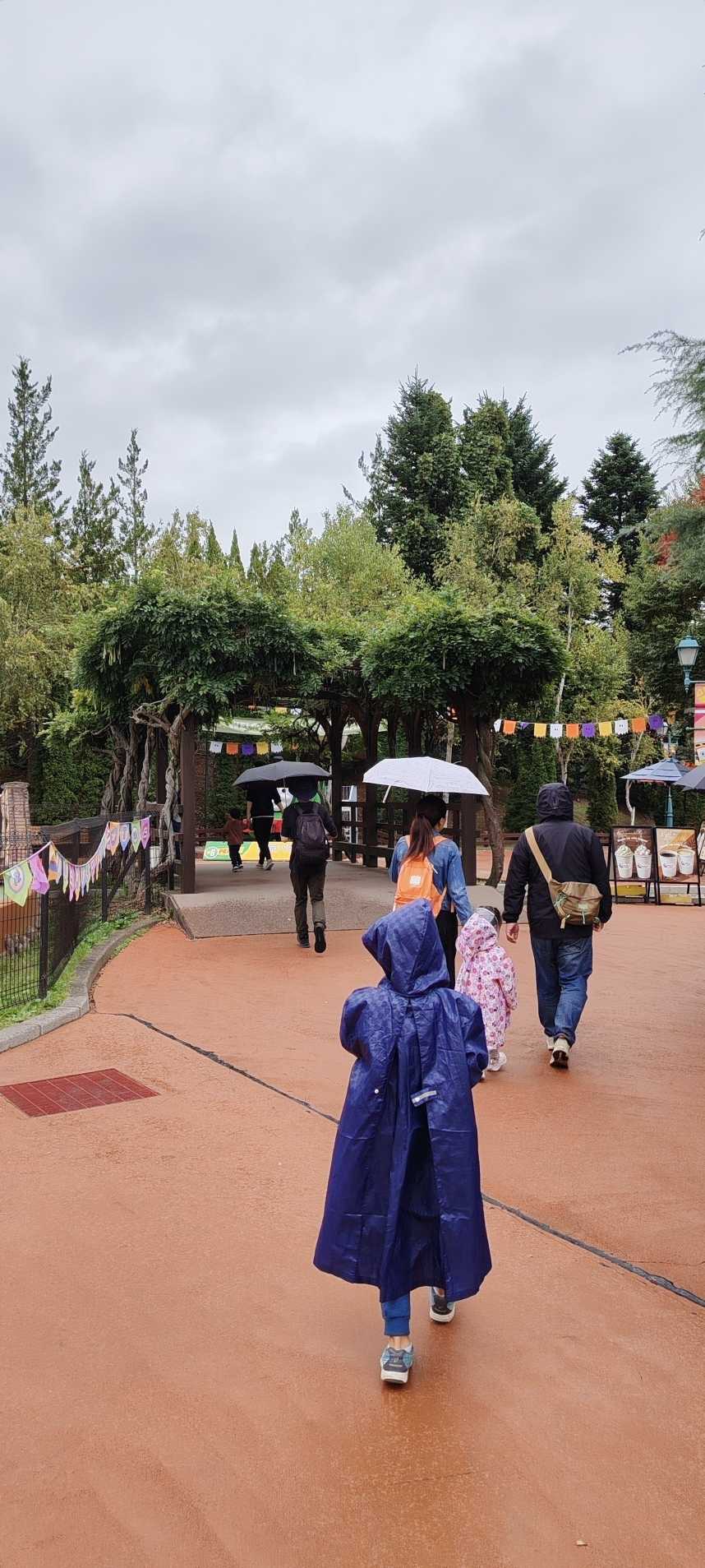 Children didn’t meet the age and height requirements, so they couldn’t ride. My son and daughter-in-law put on the raincoats provided by the park and rode a lap.
