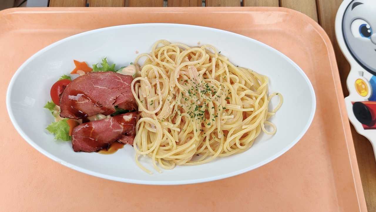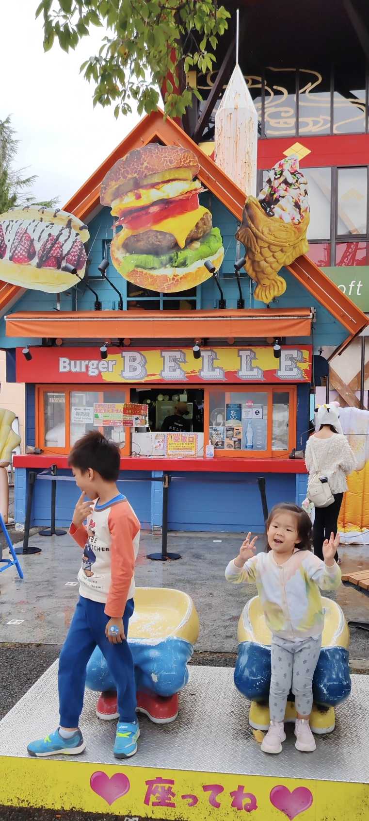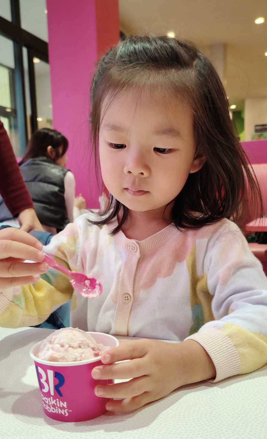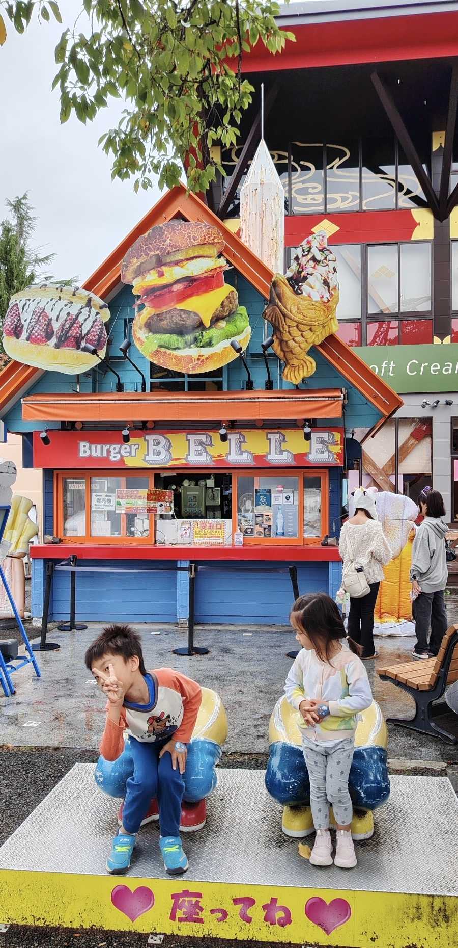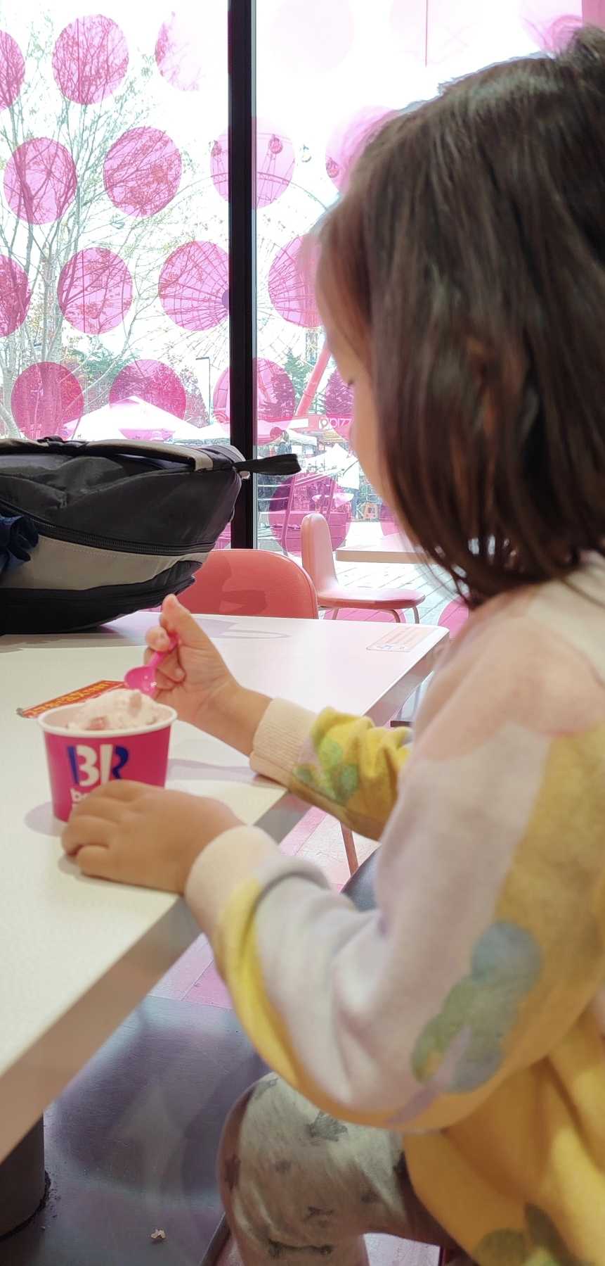 We bought ice cream for the grandson and granddaughter at an ice cream shop, then found an Italian pasta restaurant to eat something, waiting for the rain to stop.