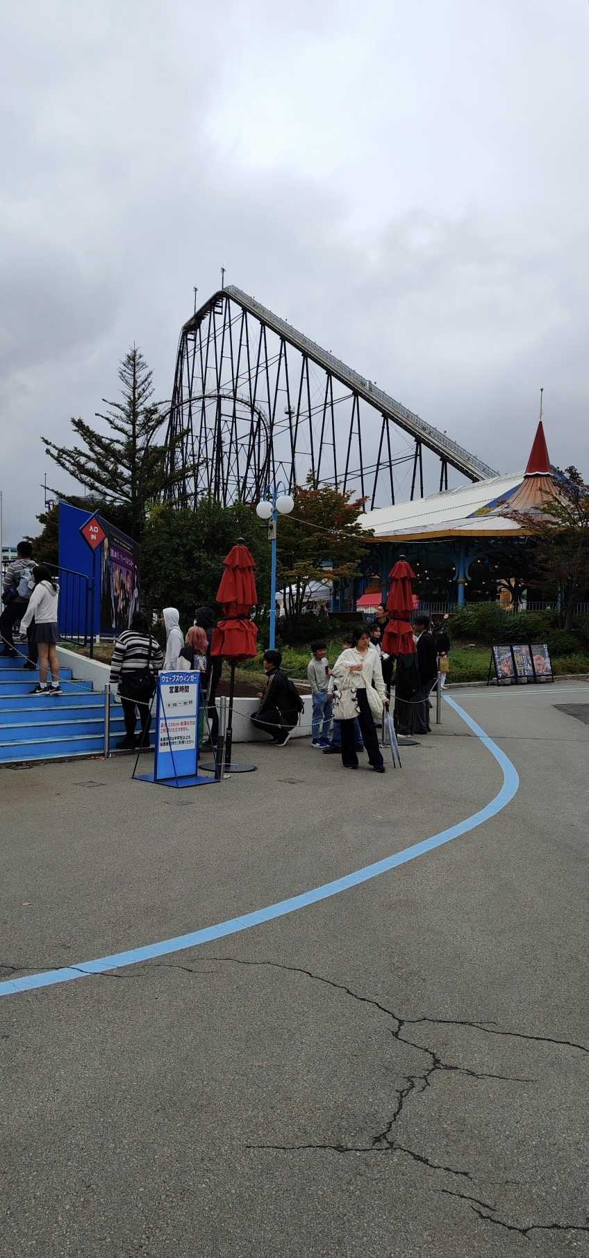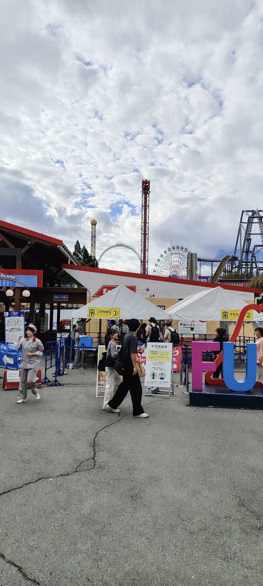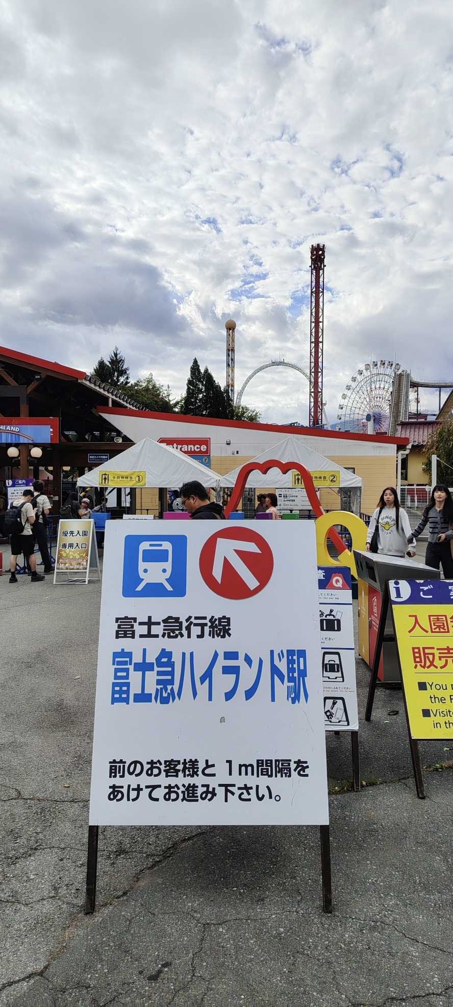 Fuji-Q Highland opens at 9:00. Arriving early to queue helps avoid crowds; we were third in line.