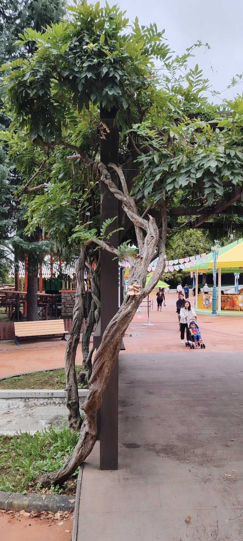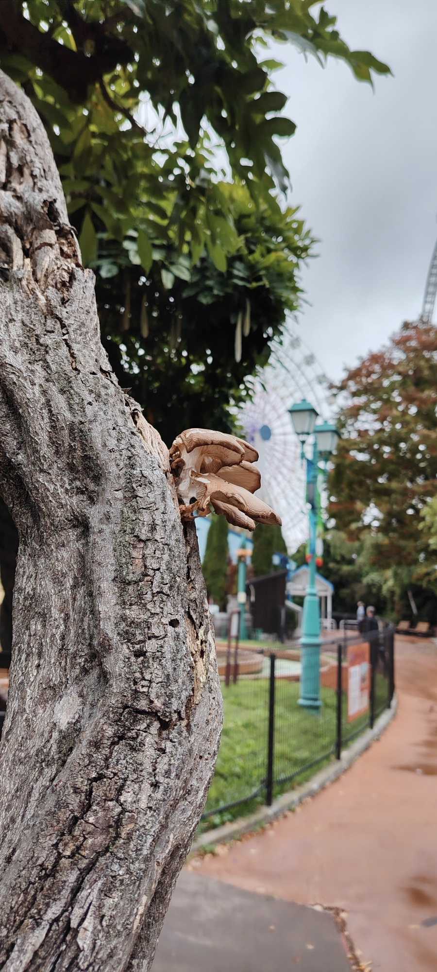 Walking from Thomas Land to another area, we passed a wisteria trellis. The wisteria on both sides was thick, and the trees were clearly old. Surprisingly, mushrooms were growing on the trees. I’ve seen willow mushrooms, elm mushrooms, birch mushrooms, but wisteria mushrooms were a first for me!