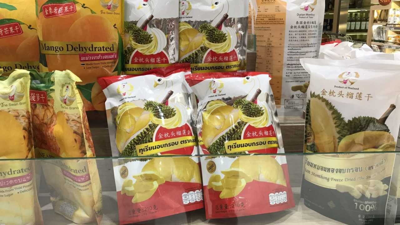 Dried fruit is a must-buy when traveling in Thailand — a snack you can eat anytime, anywhere. You’ll find many types in the supermarket, such as durian, mango, strawberry, and banana. Pick any flavor you like; they’re all tasty, not overly sweet, and reasonably priced.