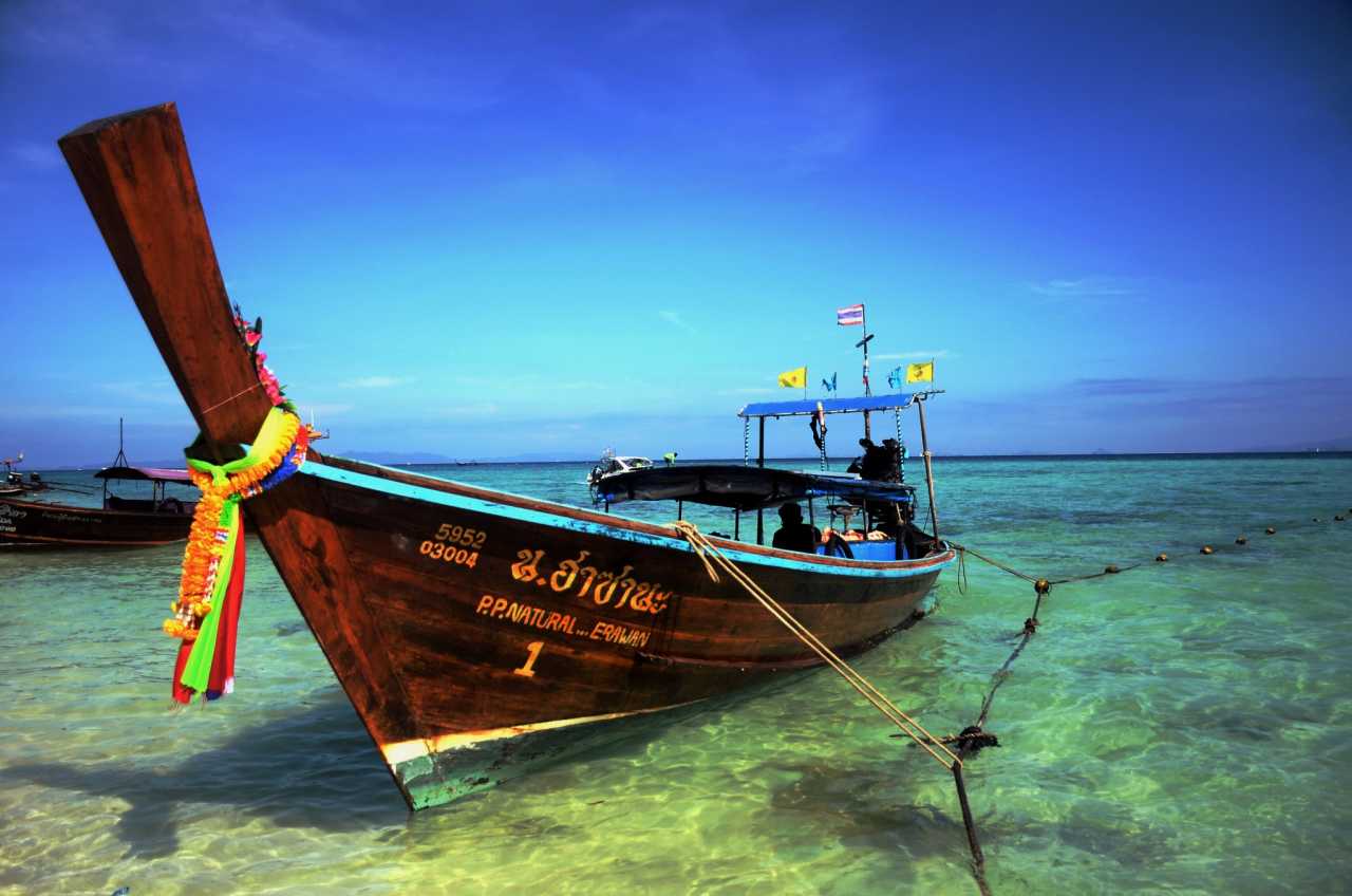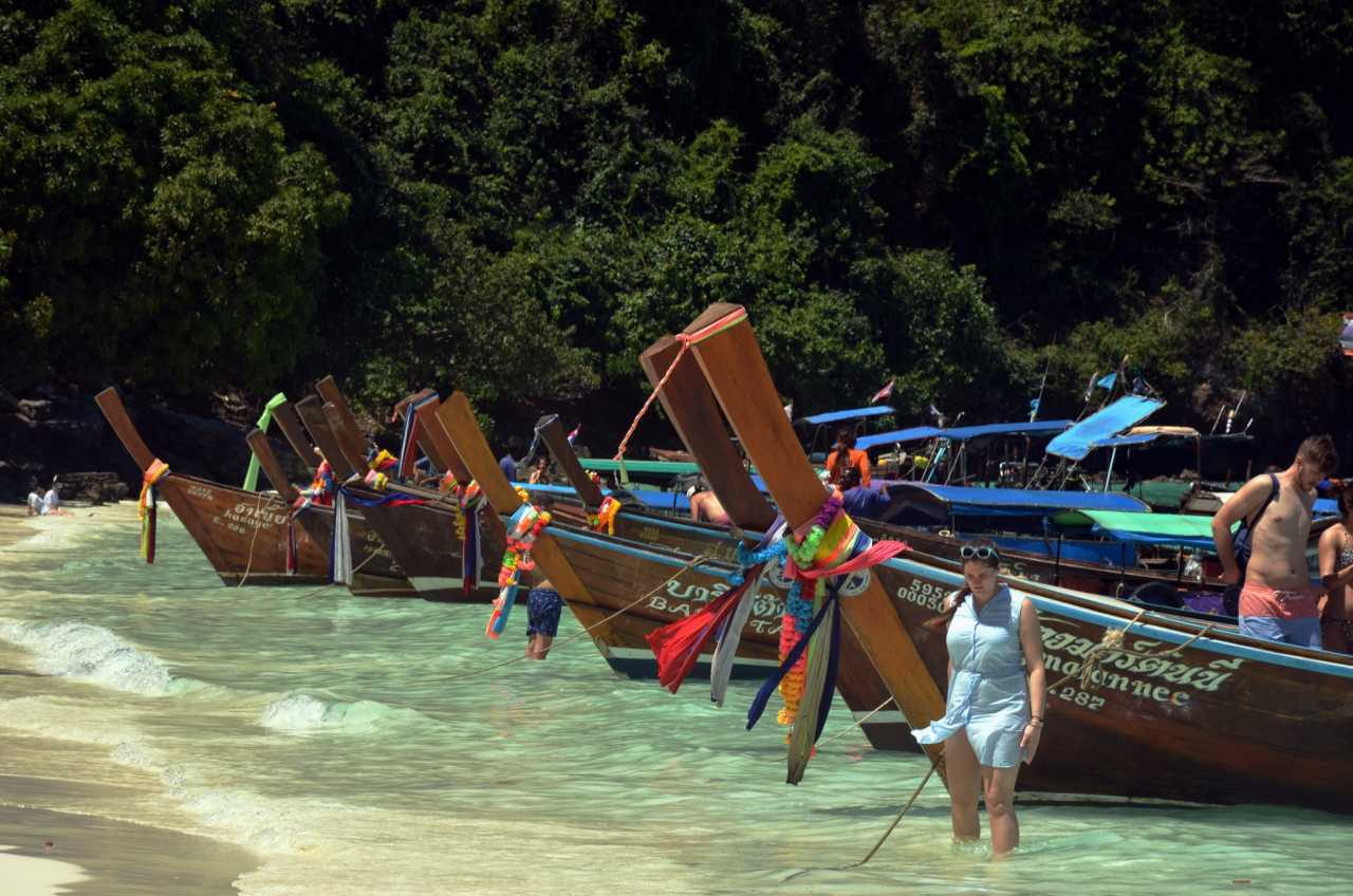 Bamboo IslandLong‑tail boats anchored along the shore complete the quintessential Phuket image. Many people take photos here.