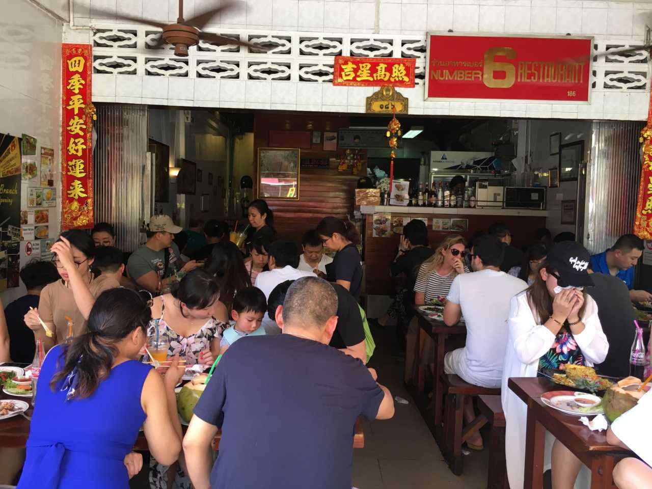 No.6 RestaurantIt felt packed like a street stall, with at least a 30‑minute wait. A songthaew shuttle arrived; knowing there’s a hilltop branch, we hopped on. Ten minutes later we reached No.6’s hilltop outlet.