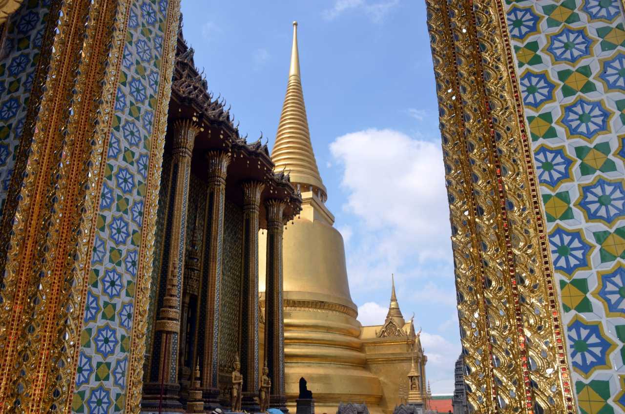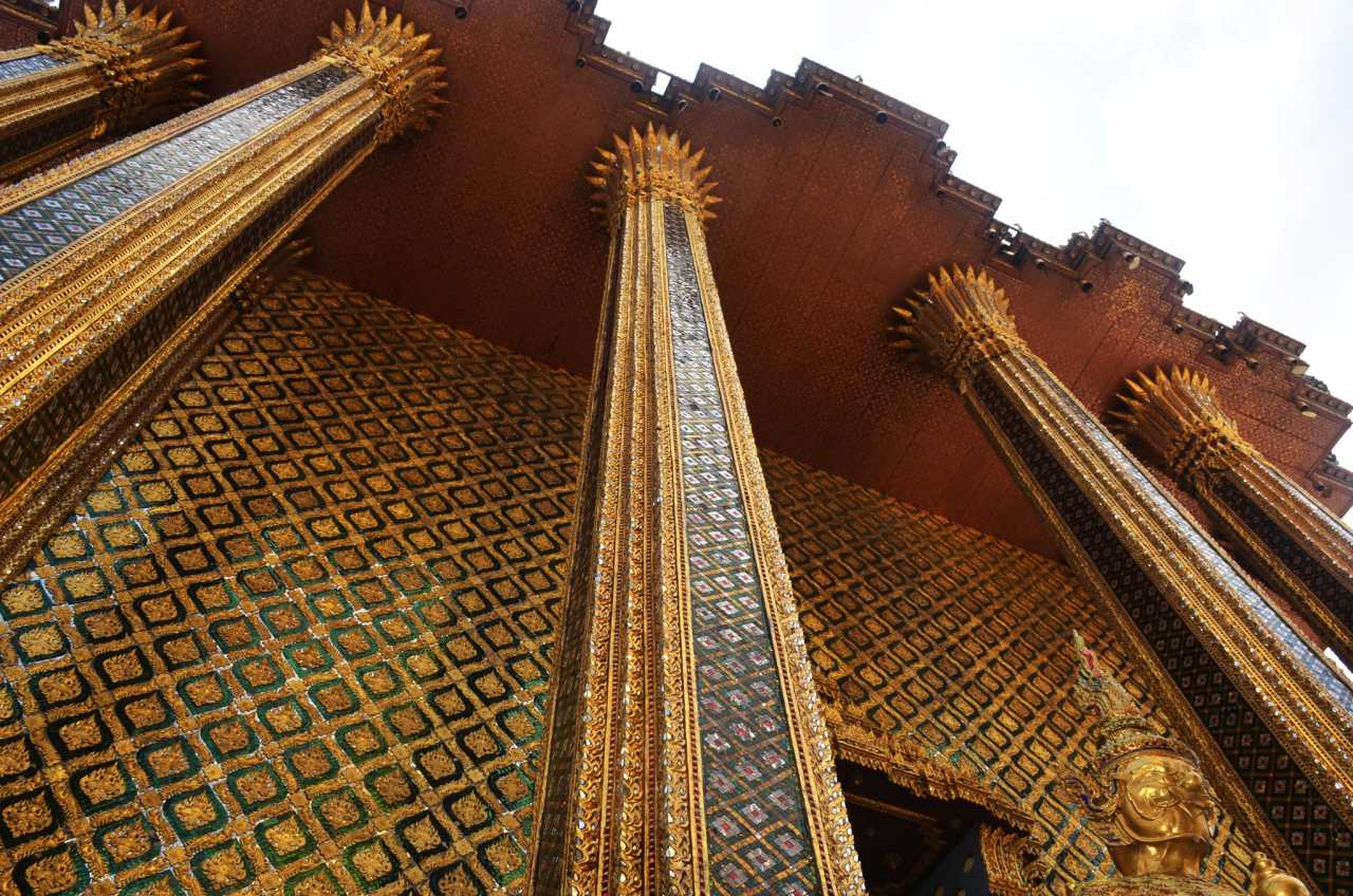 Grand Palace BangkokTraditional Thai buildings excel at glass and mosaic work; columns shimmer. “Gold and jade splendor” fits, though the overall scale feels less grand than the Forbidden City.