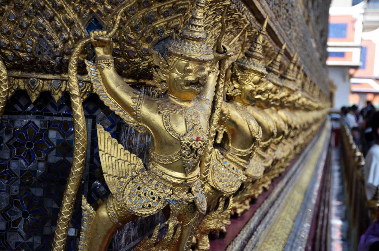 Wat Phra KaewA row of figures—angels or demons? They often appear in travel guides.
