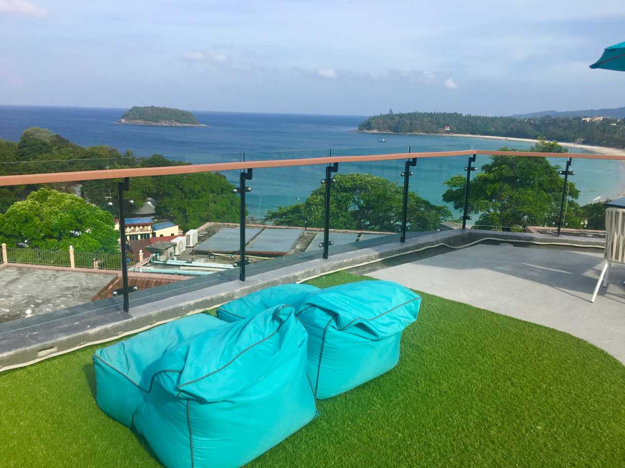 The SIS Kata opened recently, so facilities are new. Perched between Kata and Kata Noi on the hillside, views are excellent. I compared many hotels and chose this for value and its stunning infinity pool. Prices aren’t low: about 1300 RMB per night with breakfast (refundable). Prepaid non‑refundable rates can be ~800 RMB but are risky if plans change. Book early; two months ahead worked for us, and a month before arrival it was full.