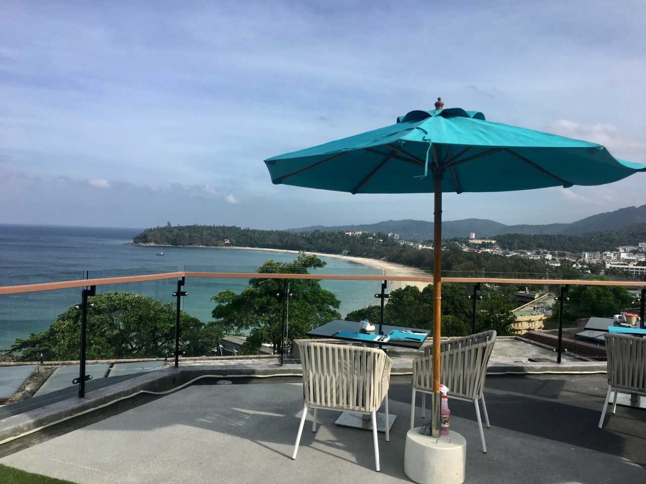 The SIS Kata Resort - Adults OnlyPool opens at 7 am; we swam and took photos while it was quiet, then had breakfast at the 4th‑floor poolside restaurant with wide views over Kata beach. Food was decent.