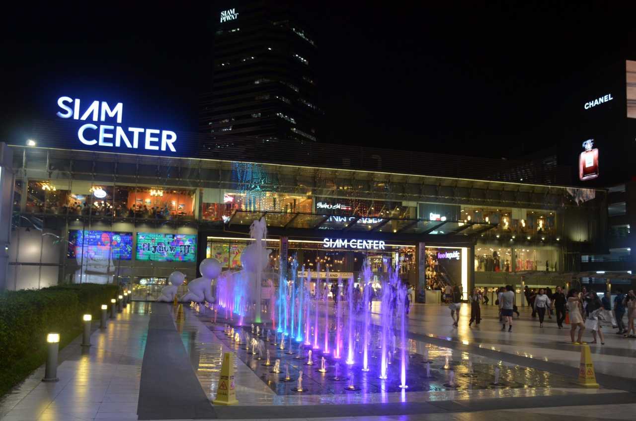 Siam ParagonThe plaza sits between Siam Center and Paragon, elegantly separating pedestrian and vehicle flows. With fountains and neon, this is Bangkok’s fashion center.