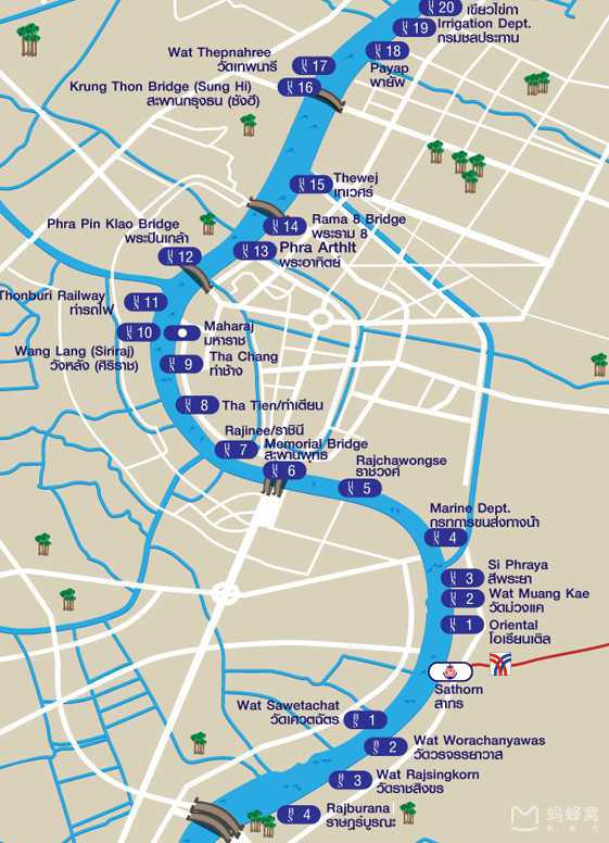 River‑boat routes: typically take BTS to Saphan Taksin and transfer to boats. A 5‑minute walk leads to Sathorn Central Pier; boats run north along the Chao Phraya serving sights along the river.