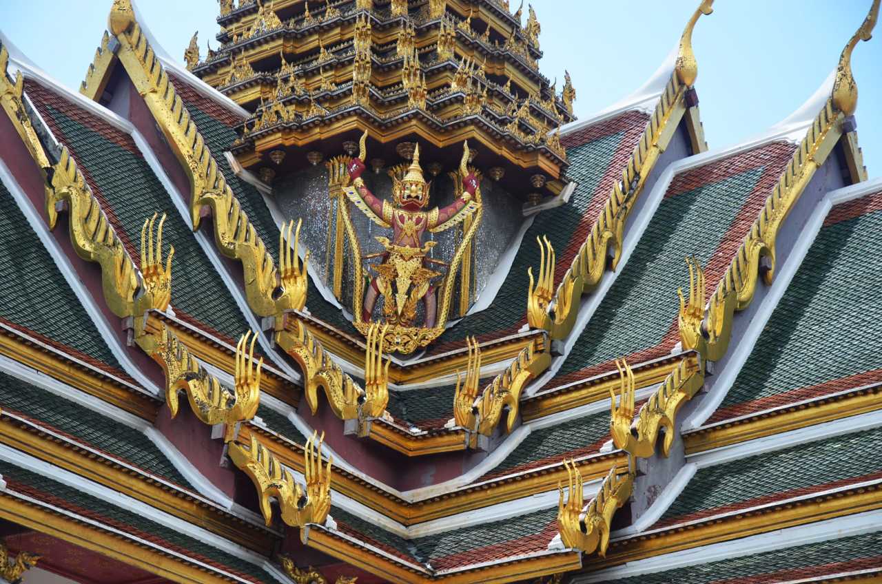 Grand Palace BangkokSupporting figures (yakshas) hold up structures—they’ve stood “lifting” for a century.