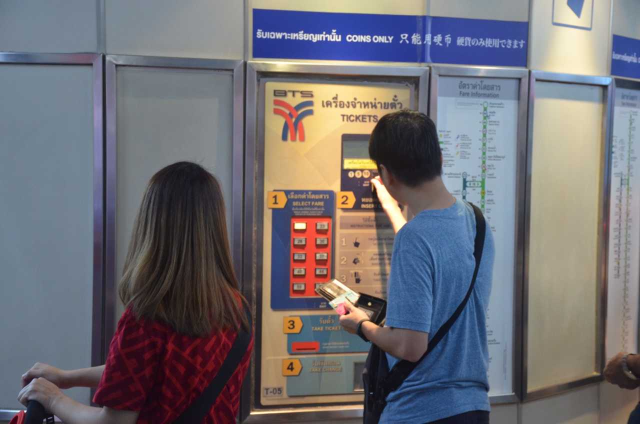 Bangkok BTS has two service counters: one sells tickets directly; the other changes coins per your destination so you can use the machines. It’s straightforward.