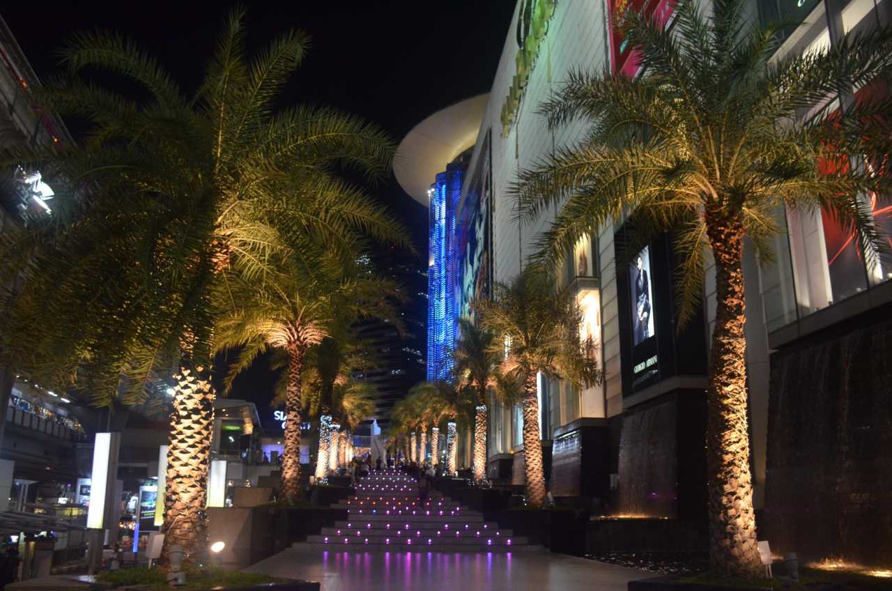 Siam ParagonFrom Paragon toward Siam Center there’s a palm‑lined promenade leading to a 2nd‑floor plaza.